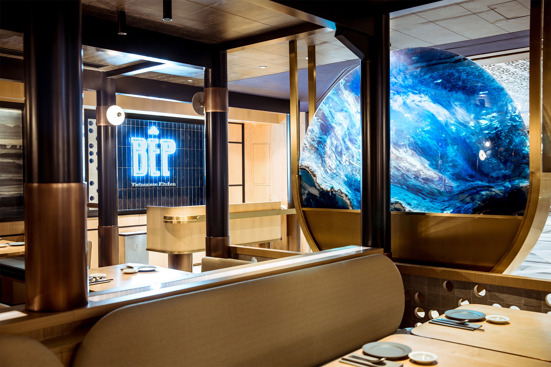 Hong Kong’s Vietnamese food offerings are getting slightly saturated with many new players in town. With BEP at K11 Musea, our job as Design Consultant was to take the BEP Brand name a step further with a new concept tailored specifically for the the site’s landlord, K11. This updated concept is focused on the story of “Docks”- as the site is located right on the edge of Hong Kong’s iconic Victoria Harbour waterfront. Key words like Aqua, Tidal, Ocean, Gradation, Structured, Textured, Memorable, and Juxtapose- give our strategic vision a narrative anchor related to that romantic idea of what it feels like to be near to or close to dockside life.