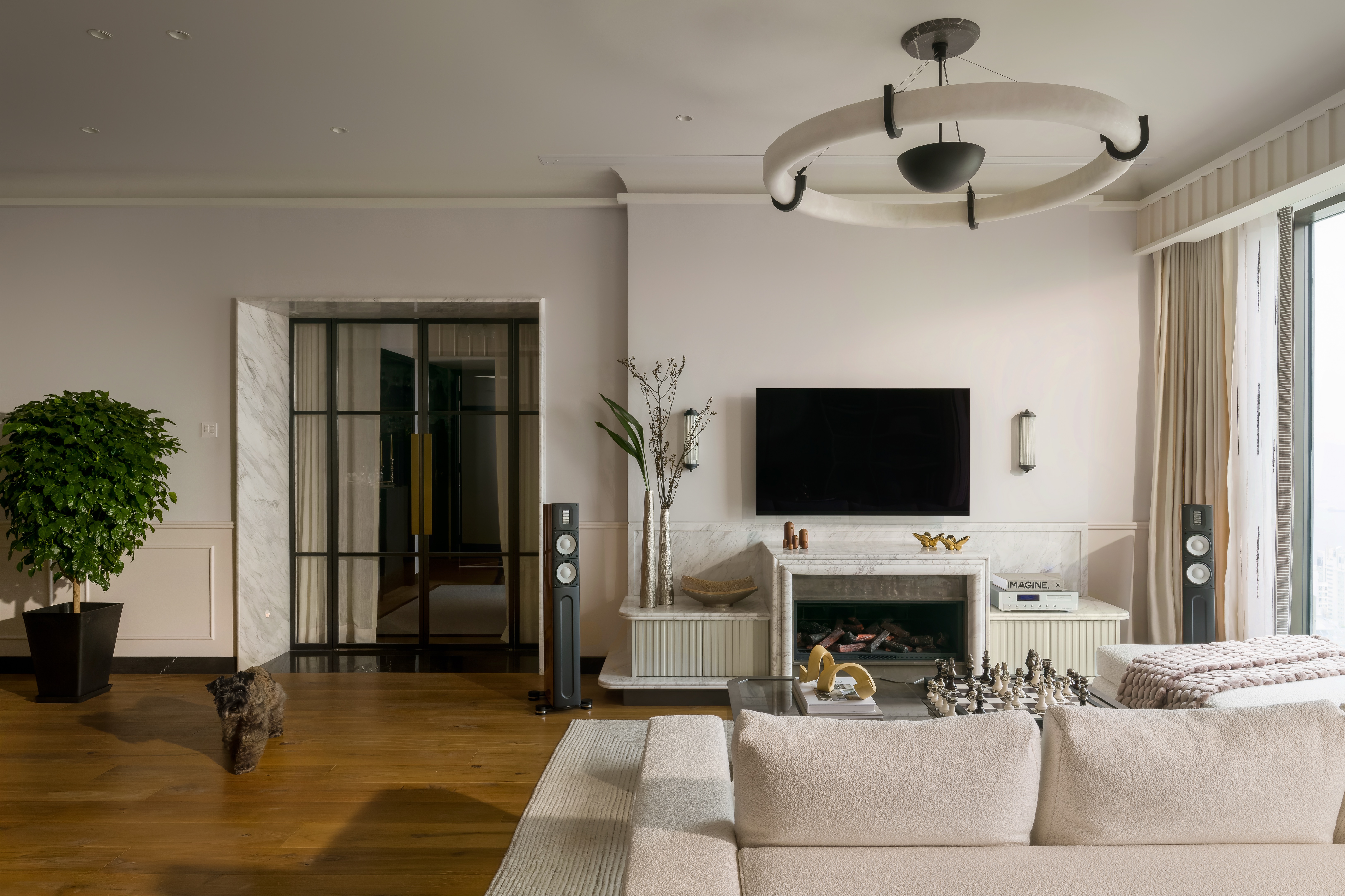 The space called for impeccable style and versatility. The latter anticipates significant changes like bedrooms for the children, and other recommendations from their geomancer, which changes every year. “The client likes things clean because they are heavily into Feng Shui.”